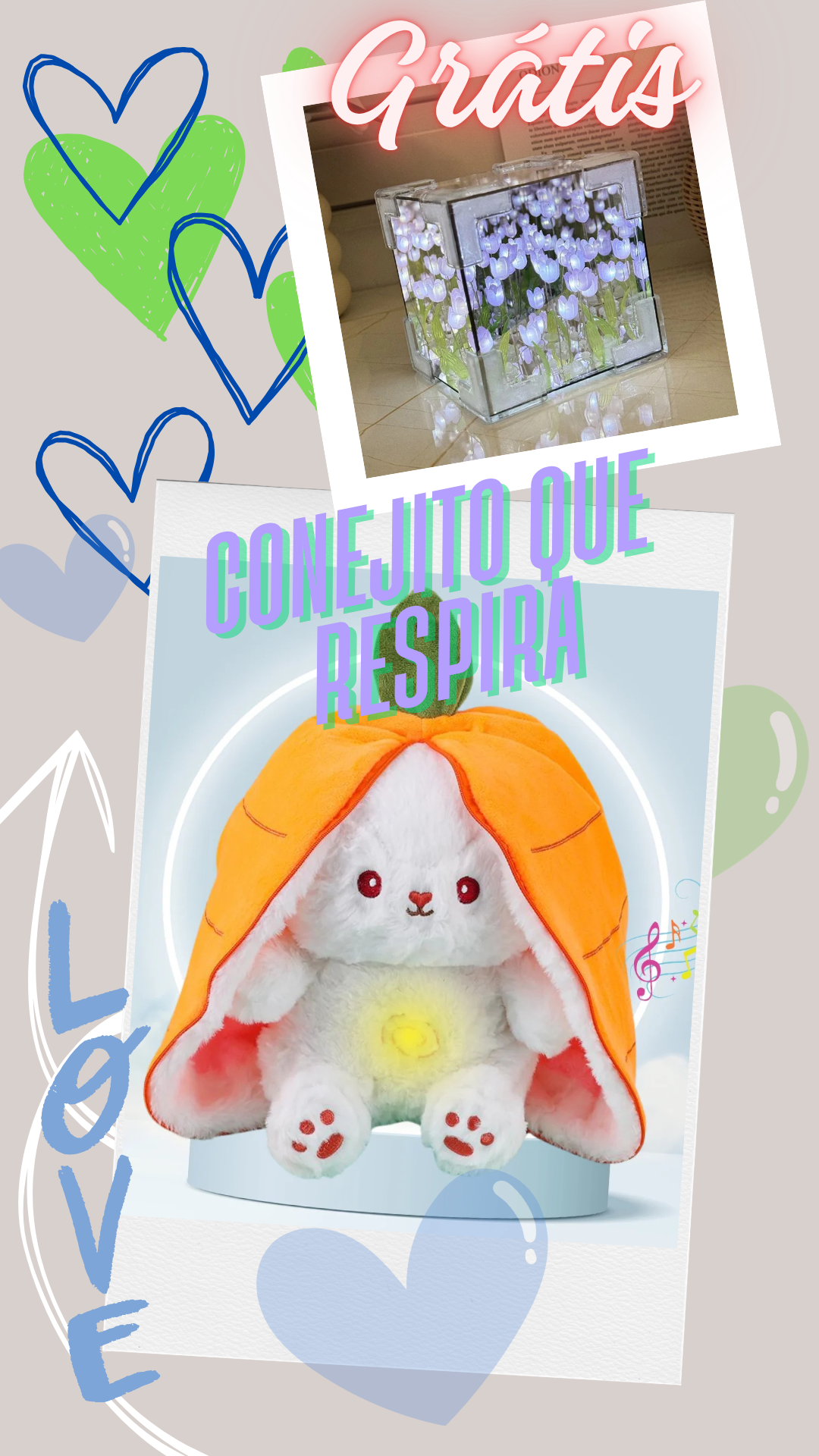 CONEJITO QUE RESPIRA + LAMPARA DE TULIPANES